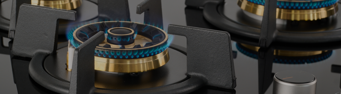 Swissmin 60cm Black Glass Gas Hob with 4 Brass Burners