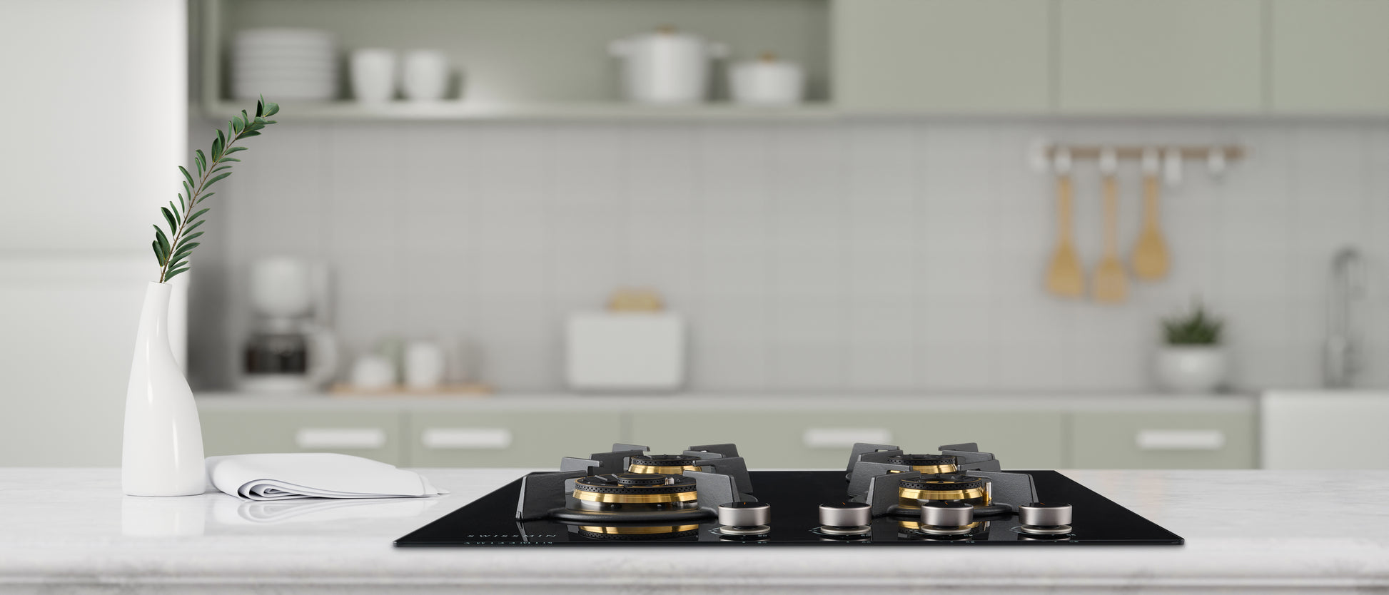 This premium gas hob is equipped with four elegant, robust solid brass burners and burner caps, ensuring efficient heat distribution for all your culinary creations. The cast iron pot stands provide exceptional stability and durability, while innovative surface and edge protective pads safeguard the glass hob surface, keeping it pristine and long-lasting.