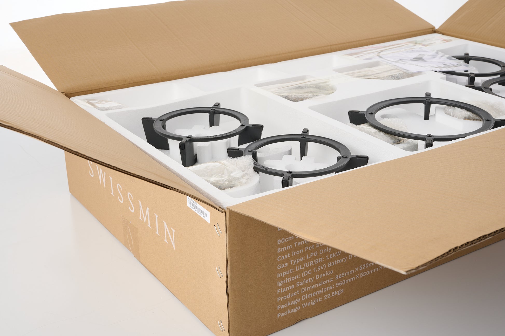 - 5 x sturdy cast iron pot stands provide excellent stability, enhanced with surface and edge protective pads to ensure the longevity of the glass panel.