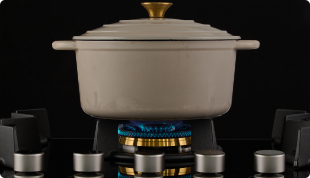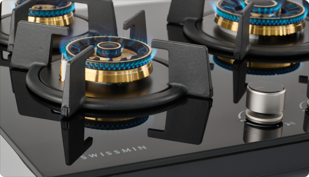 This premium gas hob is equipped with four elegant, robust solid brass burners and burner caps, ensuring efficient heat distribution for all your culinary creations. The cast iron pot stands provide exceptional stability and durability, while innovative surface and edge protective pads safeguard the glass hob surface, keeping it pristine and long-lasting.